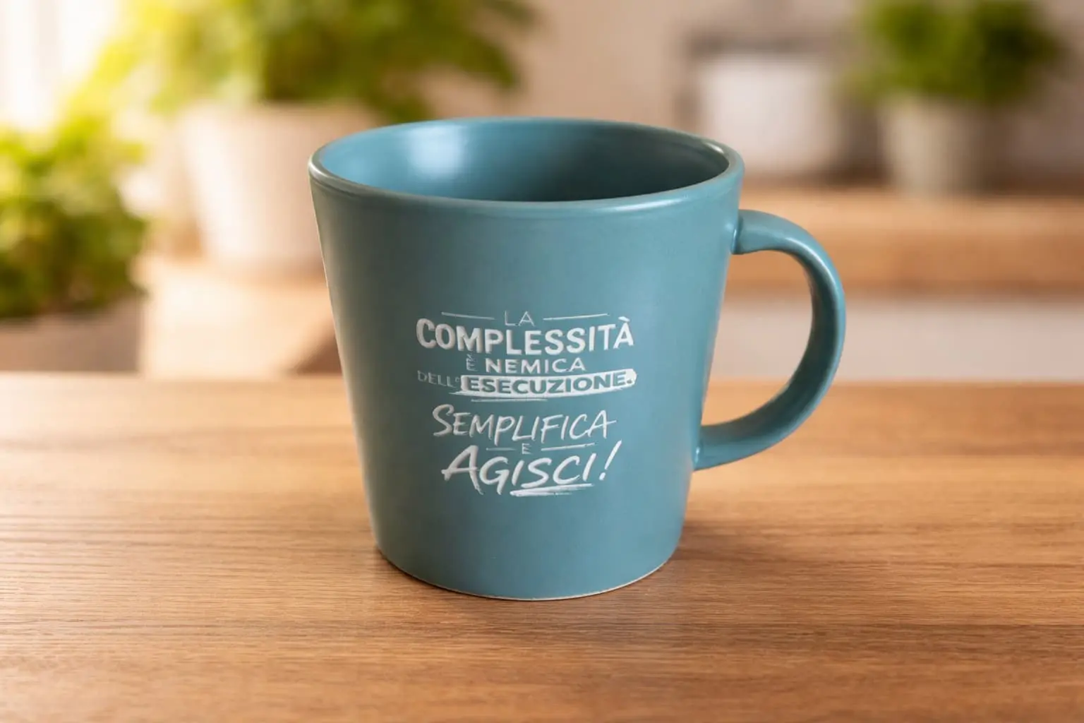 Tazza in ceramica opaca da 355 ml “La complessità è nemica dell’esecuzione. Semplifica e agisci”