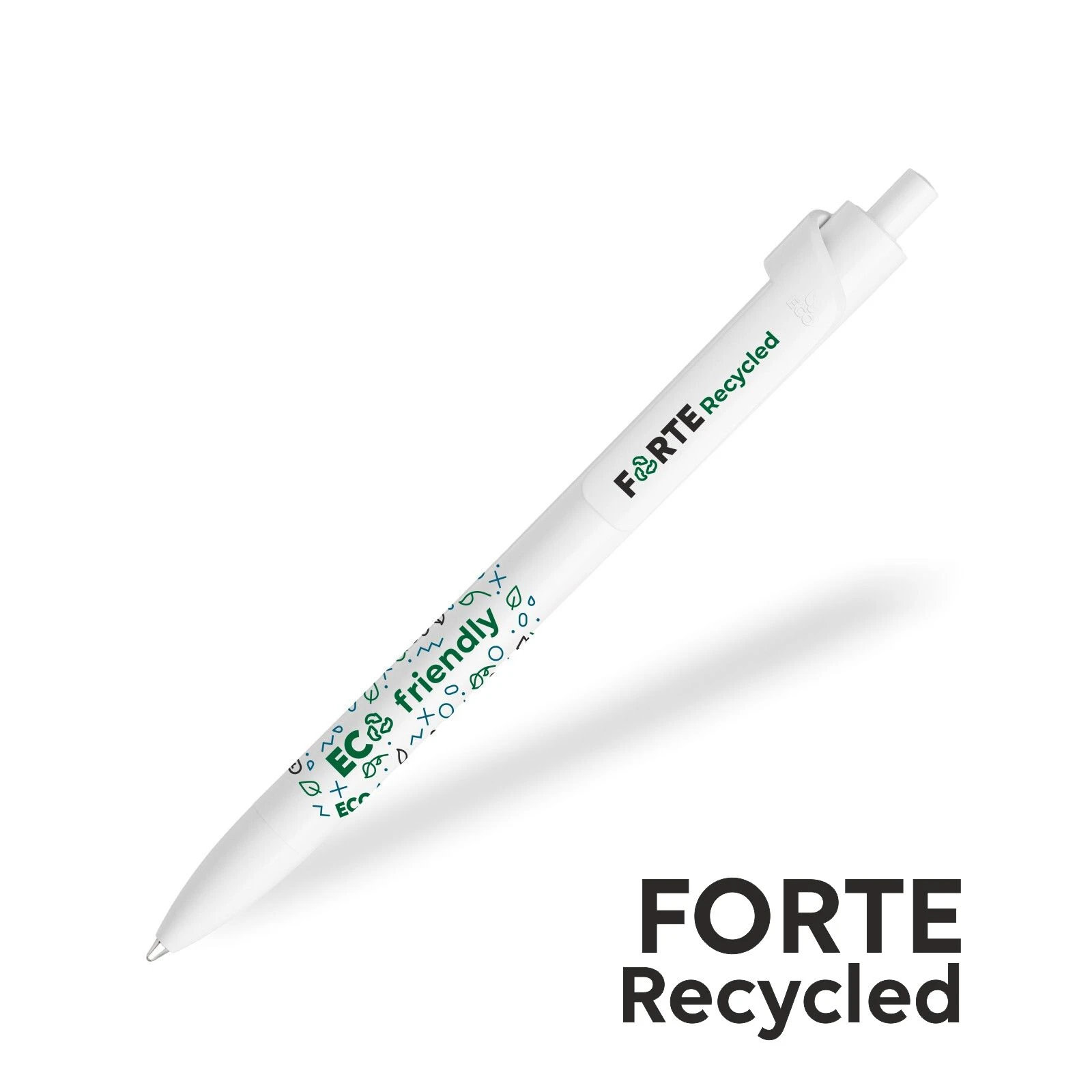 Grazie alla forma ergonomica, al design moderno e alle possibilità di stampa silkscreen o pad printing, la penna FORTE Recycled aumenta la visibilità del tuo brand e comunica attenzione all’ambiente.